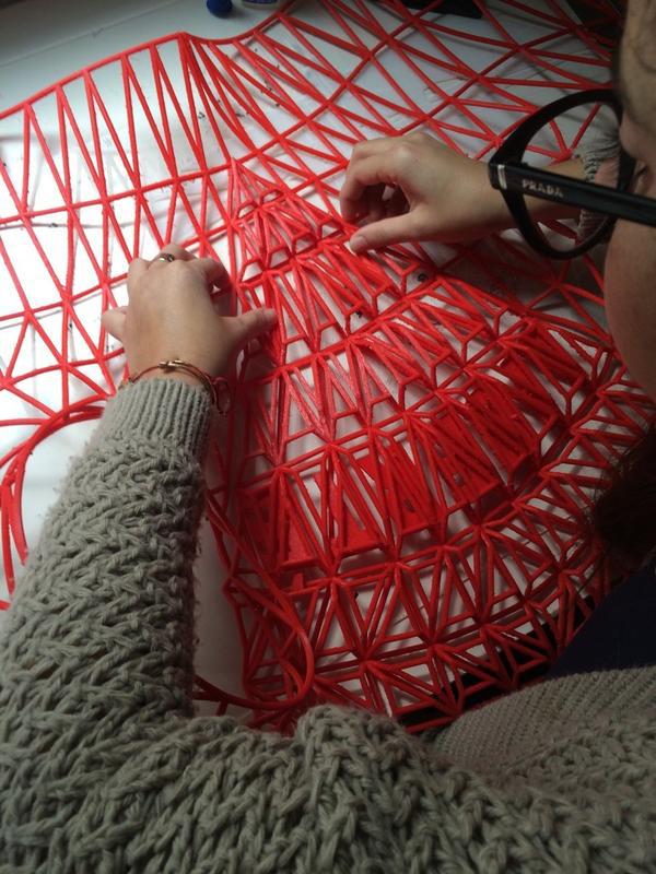 但是,在这项技术真正投入现实生活使用之前,我们仍需等上几年,因为存在成本和时间问题。她表示,这个创作过程并不如在家下载和打印文件那么简单。她的尝试时间长达一年,首先要解决的就是如何让塑料有织物的弹性。她的解决方案是:使用单纤维 FilaFlex——一种弹性极好的新型聚氨酯。通过在线调查,她找到了Andreas Bastian 博士的在线 3D模型库 Thingiverse 的介孔多孔材料(Mesostructured Cellular Materials)项目——借助它可制作像斜纹剪裁面料一样弯曲和伸展的3D打印图案。